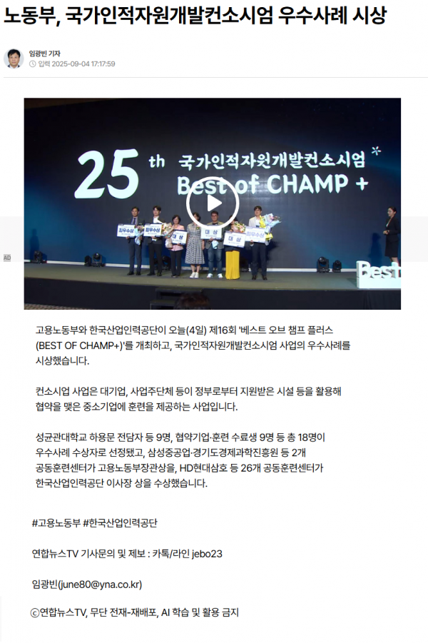 노동부, 국가인적자원개발컨소시엄 우수사례 시상