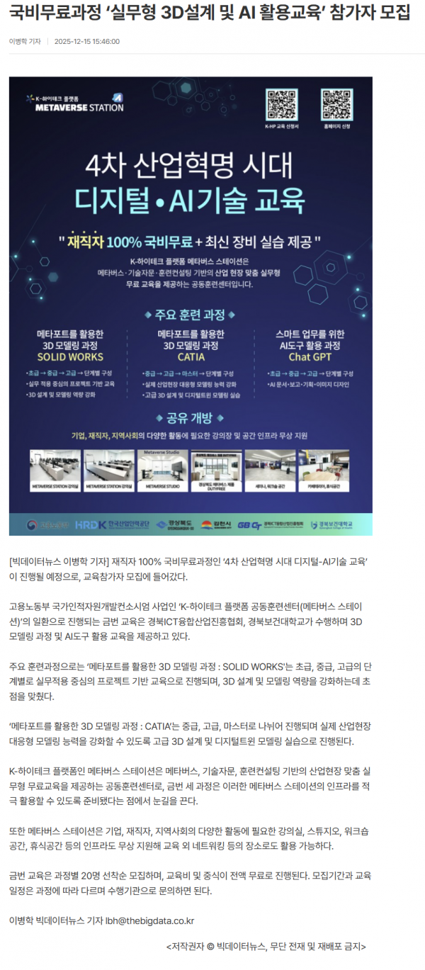 보도일 : 25-12-15 언론매체 : 빅데이터뉴스
