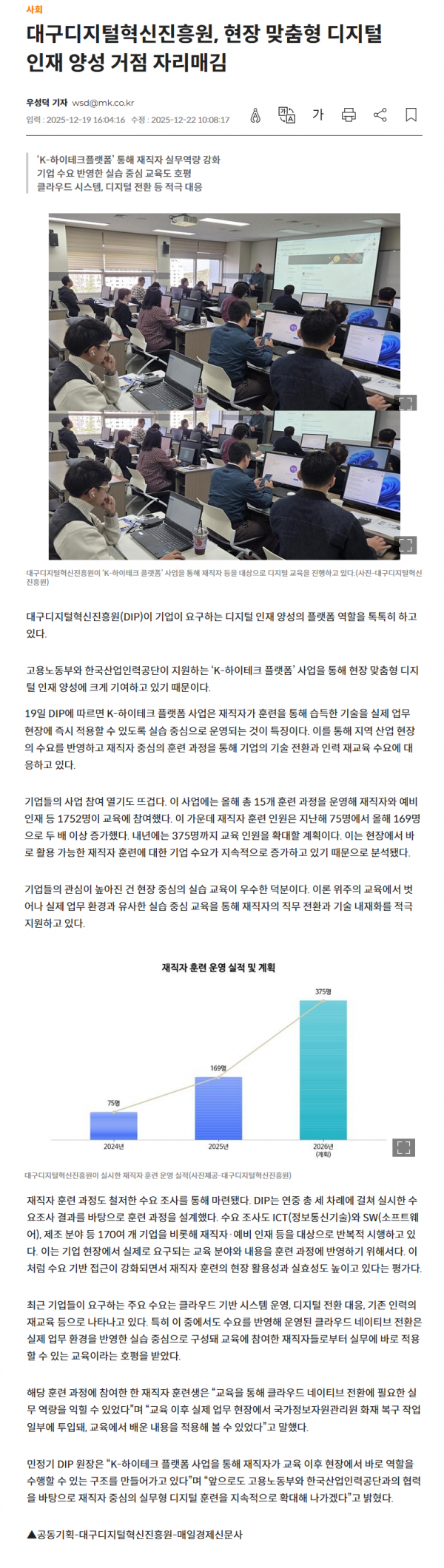 대구디지털혁신진흥원, 현장 맞춤형 디지털 인재 양성 거점 자리매김