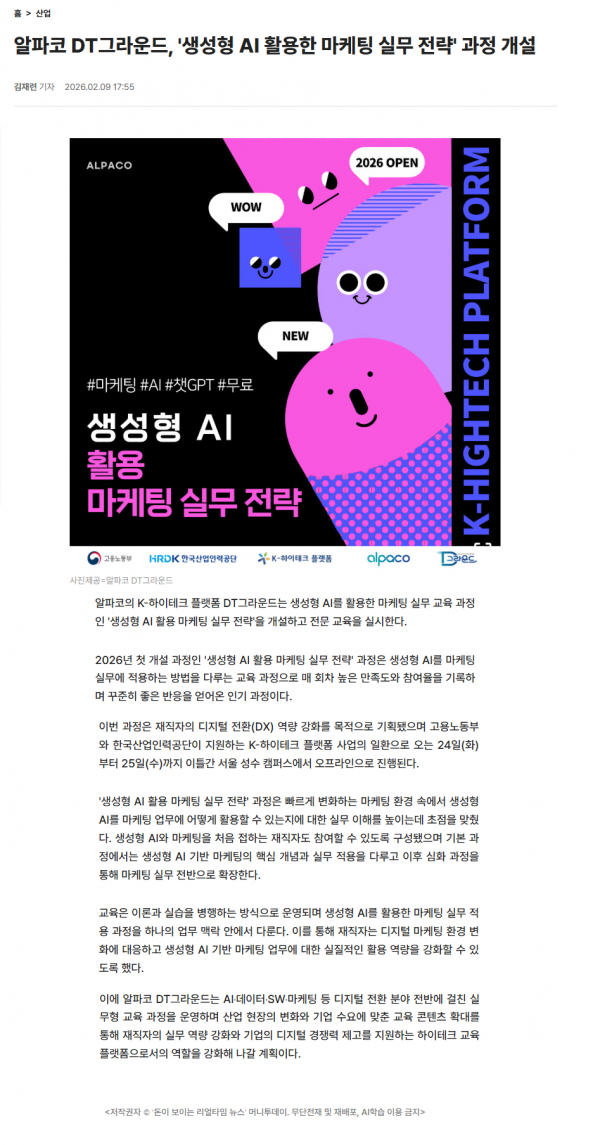 보도일 : 26-02-09 언론매체 : 머니투데이